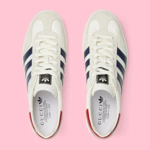 Elevate your footwear game with the Adidas x Gucci Gazelle White Sneakers, a collaboration that merges Adidas’ classic streetwear style with Gucci’s luxury craftsmanship. Featuring sleek white leather, signature branding, and a timeless silhouette, these sneakers offer the perfect balance of comfort and sophistication. Whether for casual outings or upscale events, they add an unmistakable touch of elegance to any look.