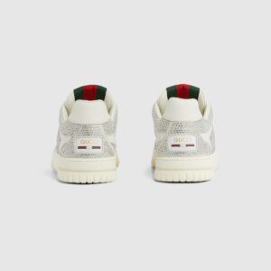 The first sneakers envisioned by Sabato De Sarno for the House, the Re-Web sees Gucci’s heritage stripes as a bold statement detail on a contemporary silhouette. This pair is crafted from white leather and enriched by a crystal appliqué. Defined by multiple iconic details, this new sneaker takes center stage.