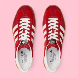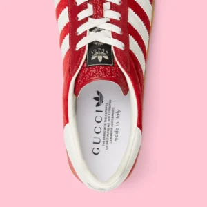 Step into luxury with the Gucci x Adidas Gazelle ‘Red’ Sneakers, a vibrant twist on the classic Gazelle silhouette. Featuring bold red suede, premium detailing, and dual branding, these sneakers seamlessly blend Adidas’ sporty heritage with Gucci’s unmistakable elegance. Designed for those who crave both style and comfort, they add a pop of color and sophistication to any outfit, perfect for making a statement in any setting.