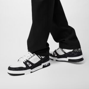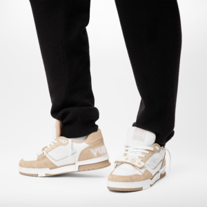 The Louis Vuitton LV Trainer ‘Beige’ is a sophisticated blend of luxury and streetwear, showcasing Louis Vuitton’s iconic craftsmanship. This sneaker features premium beige leather that exudes a timeless elegance, while the intricate stitching and embossed LV monogram add a touch of refinement. Designed by Virgil Abloh, the LV Trainer is both stylish and functional, offering a comfortable fit with its padded interior and durable rubber sole. Perfect for those who appreciate high-end fashion, this sneaker is a statement piece that elevates any outfit.