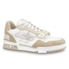This version of the LV Trainer sneaker combines Monogram leather with calfskin embossed with the Mini Monogram pattern. Designed by Virgil Abloh, this iconic model was inspired by vintage basketball sneakers. Its elaborately constructed upper, which is notable for its rich detailing and Louis Vuitton signatures, takes seven hours to stitch.