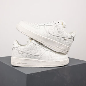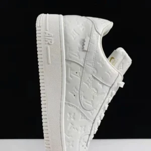 To mark the 40th anniversary of the Nike Air Force 1, Virgil Abloh reinterpreted the iconic sneaker in emblematic Louis Vuitton materials, presenting his designs at the Spring-Summer 2022 men’s show. This low-top version comes in supple, white calf leather embossed with the Monogram pattern. The Louis Vuitton and Nike “Air Force 1” by Virgil Abloh collection is crafted at Louis Vuitton’s shoe manufacture in Fiesso d’Artico, Italy.