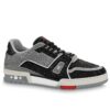 This version of the LV Trainer sneaker combines smooth calf leather with grained calf leather, which is embossed with Louis Vuitton’s iconic Monogram pattern. This cult sneaker was designed by Virgil Abloh, who drew inspiration from vintage basketball sneakers. The rubber outsole, which is decorated with Monogram Flowers, is matched to the upper for a colorblock look.