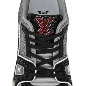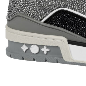 This exceptional edition of the LV Trainer sneaker is covered in sparkling rhinestones. This cult model, which was designed by Virgil Abloh, nods to vintage basketball sneakers. It is signed with the LV Initials on the tongue and side, while the #54 logo at the back refers to 1854, the year Louis Vuitton was founded.