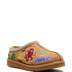 UGG and Palace have collaborated to create a fresh take on the classic Tasman slipper. Keeping their signature suede construction, they’re now adorned with playful embroidered cartoon characters, such as baby devils, psychedelic sunrises, and bomb-holding ducks, as well as Palace lettering. The interiors are lined with UGG’s trademark sheepskin, while tonal Treadlite outsoles complete the design.