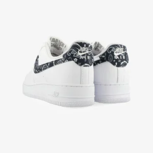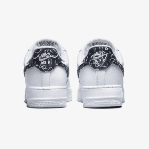 Refreshing the branding of the classic silhouette is the Nike women’s Air Force 1 ’07 Essentials ‘Black Paisley.’ The low-top has a white tumbled leather upper with textile detailing on the Swoosh and heel tab, which are both in a black-and-white paisley print. Signature AF1 features are present, including a perforated toe box, breathable nylon tongue and variable-width lacing. The sneaker is build on a solid white rubber cupsole with a pivot-point traction pattern on the outsole.