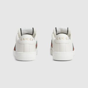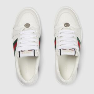 Influenced by classic trainers from the 1970s, the Screener sneaker is named for the defensive sports move. Here the emblematic style is presented in white leather with an embossed GG leather insert